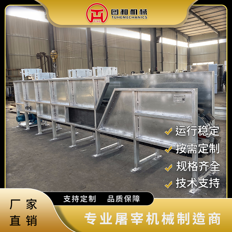 从事工艺设备的整体设计、单机设计、安装调试等是集科研与生产与一体的企业。结合众多用户使用后的信息反馈,开发研制了一系列技术、结构合复合商检出口标准的畜禽屠宰系列成套设备